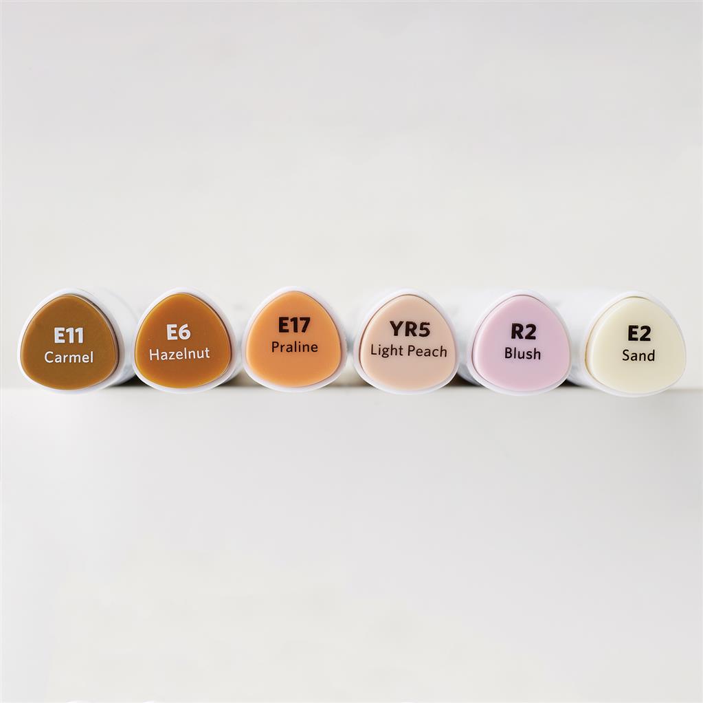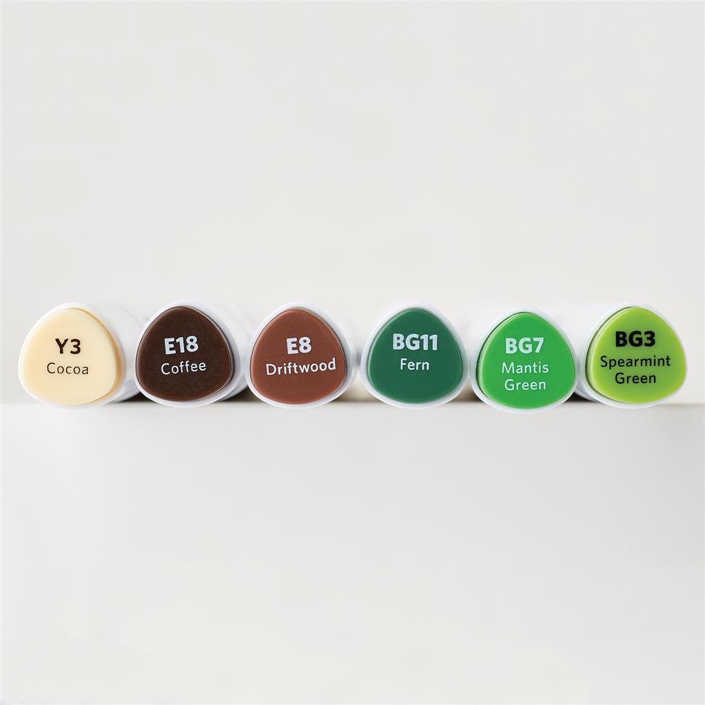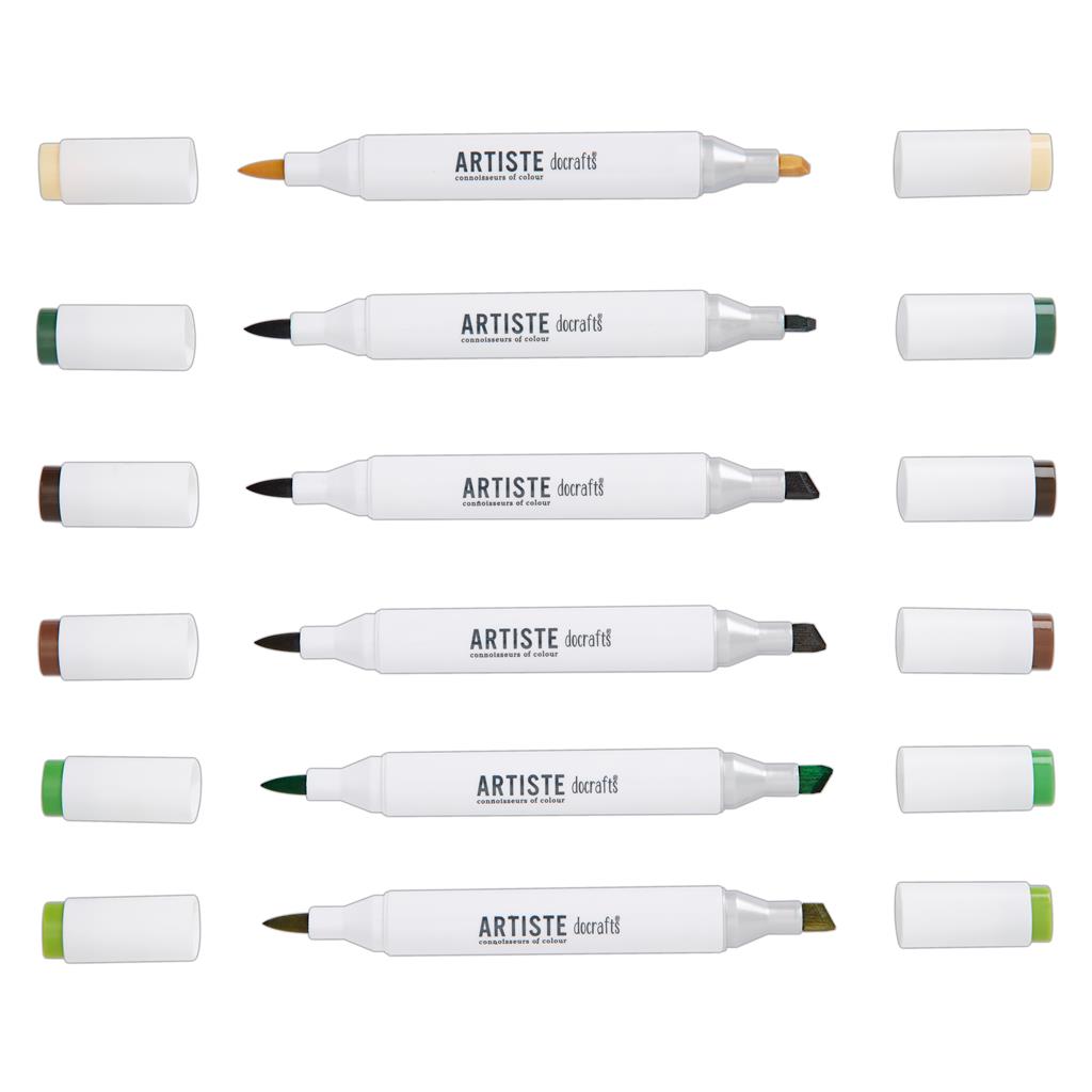 6 markerjev. Konica čopič na eni strani in konica flomaster na drugi.