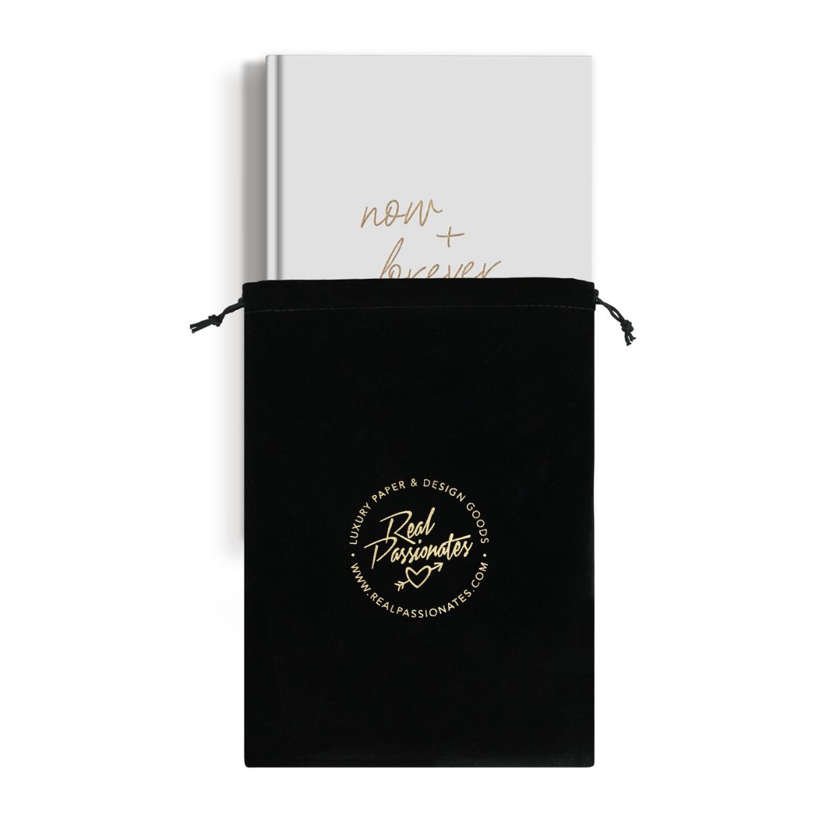 Notesnik “zdaj + za vedno” ponuja brezčasen dizajn, v katerem najdete prostor za vaše ideje in misli ter izgleda čudovito z zlato reliefno prevleko. Minimalističen ampak osuplijiv dizajn. PODROBNOSTI:✘ Barva/material: Bela z zlatim reliefom✘ Format: DIN A5 (dimenzije: 15,5 x 21,5 cm) ✘ 160 strani, fino poravnan, močan 120 g nepremazan papir✘ Vezava z nitjo za ravno ležanje, ko notesnik odprt✘ Trak (da lahko hitreje najdete, kar potrebujete)✘ Pakirano v žametni torbici z zlatim logotipom ✘ Z ljubeznijo so ga oblikovale Real Passionates.